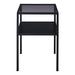 A side table with a sharp design and a glass top.