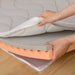 The top two layers are made of low-resilience urethane, conforming to your body. The bottom layer is made of hard urethane, providing firm support.